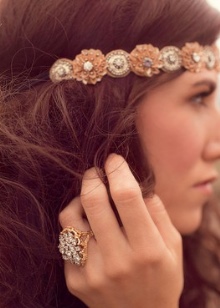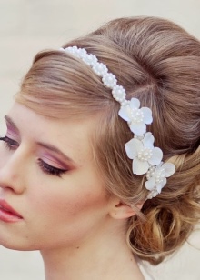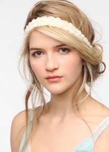 For such an image, it is better to choose rims of delicate shades. In addition to the accessory itself, you can decorate the hairstyle with beautiful hair clips or hairpins with flowers.