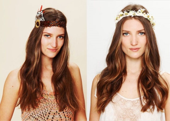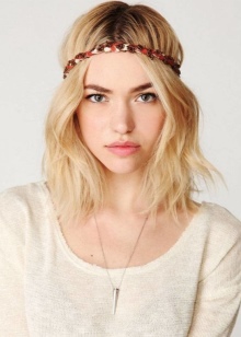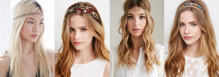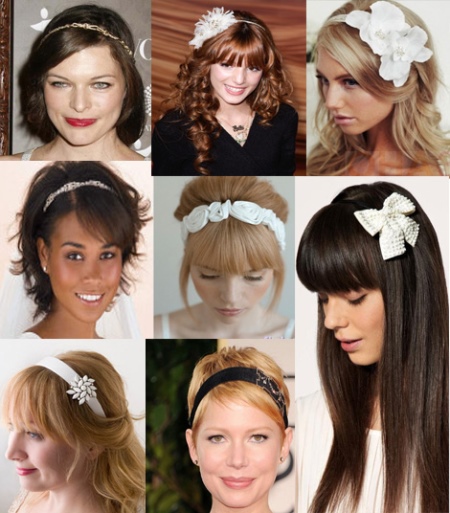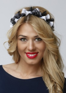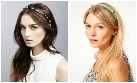 - You need to choose an accessory taking into account the length and type of hair. For long and wavy curls, absolutely any hoop is suitable. At the same time, the style of the hairstyle and the rim design are unlimited. Owners of short hair and bangs will have to use varnish when styling.