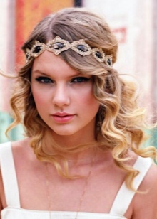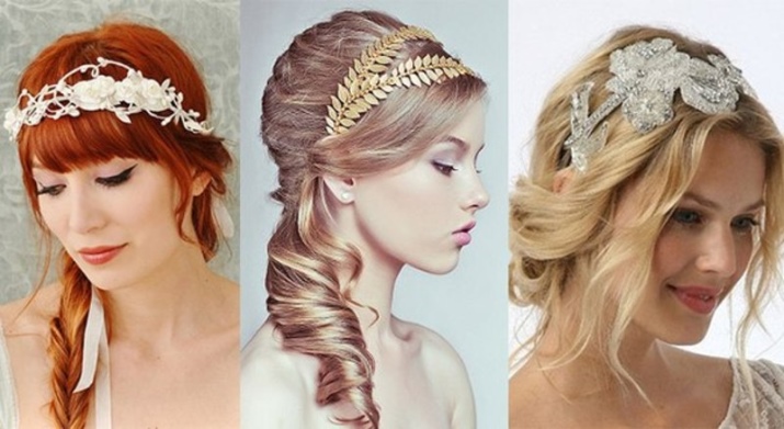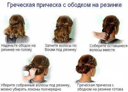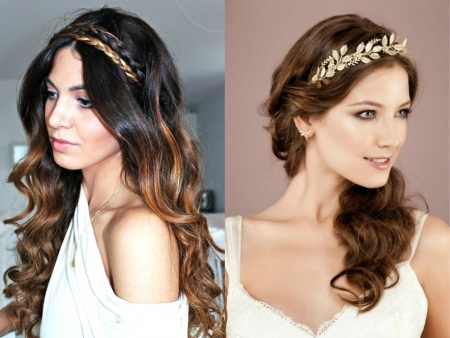 The accessory for the Greek hairstyle should not be wide. It is quite enough 2-3 cm. It is put on over combed hair and fixed with invisibility. When donning strands at the temples and bangs should remain free.