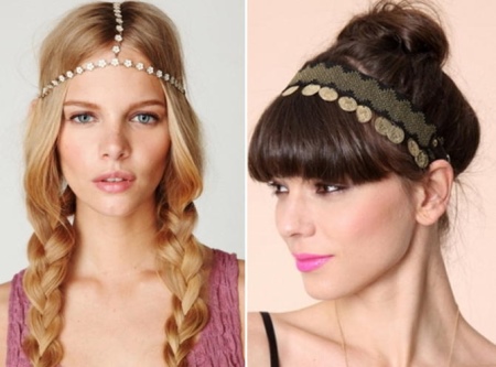 - With this decoration, you can make a variety of models of hairstyles. The functions of the headband on the elastic can be decorative or combine fixing the hair and giving the woman a royal charm.
