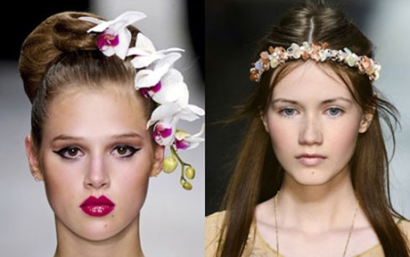 These elastic bands are incredibly beautiful and are not inferior to graceful tiaras. They can be worn for a special celebration and even for a wedding. As a rule, they are decorated with large airy flowers, pearls and sparkling crystals. Thanks to the special impregnation of the material, the flowers look realistic. Today, floral themes are relevant and very popular. Designers focus on the realism of colors.