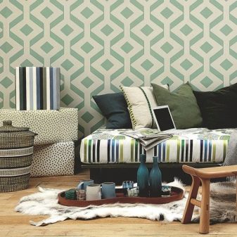 Style interior modern requires wallpapers that are stylized as brickwork, relief stone, leather, wood, plaster.