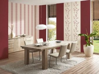 - Vertical stripes. Here, some wallpapers act as a background, and the second serve as an additional element (in this case, it is vertical stripes).