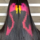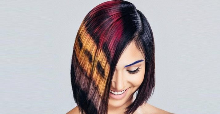 Screen painting - A relatively new trend, which is gaining popularity with every season. A feature of the technique is that with the help of a stencil, a certain pattern is applied to the curls, forming the effect of snake skin or the color of the coat of a leopard and tiger. With this type of staining, the paint is applied to individual strands without exposing the rest of the hair.