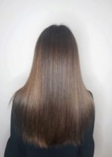 The paint is applied to the hair with strokes, in the form of the English letter V, thanks to this the hair looks natural and has only light colored highlights.