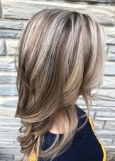 The principle of implementation is simple and similar to the previous version, individual strands are highlighted and painted in different shades. It is also possible to stretch the color so that the transition from the natural tone of the hair to the dyed part is smoother.
