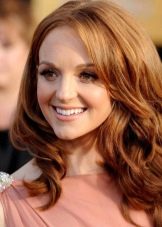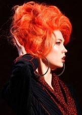 The curls of carrot color will attract a lot of attention. Still - it's a real color bomb. A bright shade will emphasize the extraordinary creative nature of the girl, as well as highlight the natural tone of her skin and green eyes.
