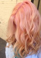 The salmon shade is very popular, but it is not quite customary to see it on the hair. A soft pink-orange tone will be the perfect solution for girls with very fair skin and blue eyes, perfectly emphasizing all the advantages of this combination.