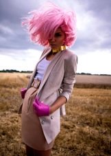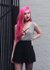 Speaking of bright unusual shades, the first is to highlight the color "fuchsia". Bright pink hair with raspberry tint will become an unusual accent of appearance and image. With certain hairstyles and a suitable make-up with this hair color, you can create both an informal everyday look and a bow suitable for the framework of a business style.