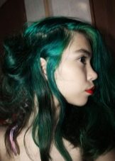 Even more questions and surprise can cause the hair of a swamp color. Not every girl decides to stain this kind and not every type of appearance will suit it. The most suitable option is dark skin and light eyes.