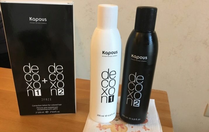 - Kapous decoxon characterized by the presence of two phases with a capacity of 0.2 l. In the process of decapitation, the pigment dissolves. According to the manufacturer, the product is suitable for full or partial highlighting. The formula of the drug is considered sparing.