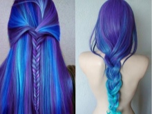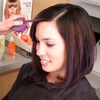 - Surface painting. Pigments do not penetrate deep into the curls, they remain on the surface. The effect does not last long on the hair, washing off with every shampoo. This opens up opportunities for frequent experiments with a shade of strands.