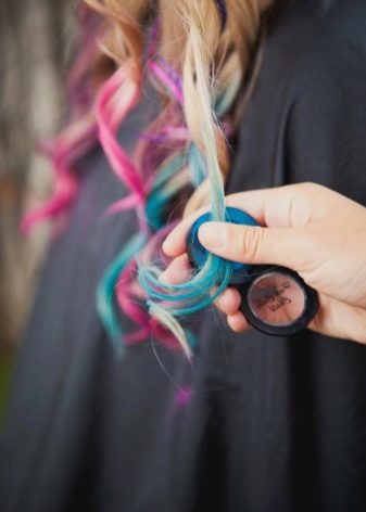 - Coloring with crayons for hair. An easy way to temporarily dye strands in bright colors. Only these dyes will dry your hair.