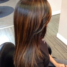 The most suitable haircuts for this technique are straightened and layered: regular and long caret, cascading haircut or ladder haircut. By texture, the strands can be completely straight or curly.