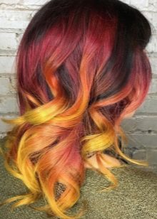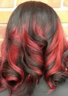 - Tongues of flame. More common on brunettes. Range of colors - from reddish to catchy bright red. The choice of locks for coloring is completely random.