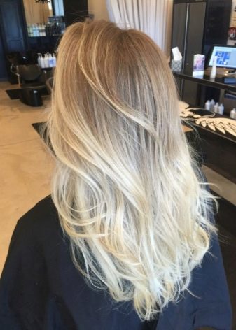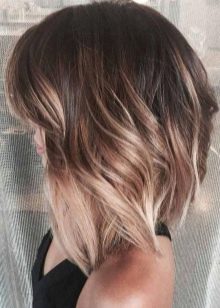 - With highlights. Suitable for fair-haired and natural blondes.On the locks, paint should be applied 2-3 tones lighter than the original color. Such an ombre will give the haircut a light glow - for this it is often called "highlighting."