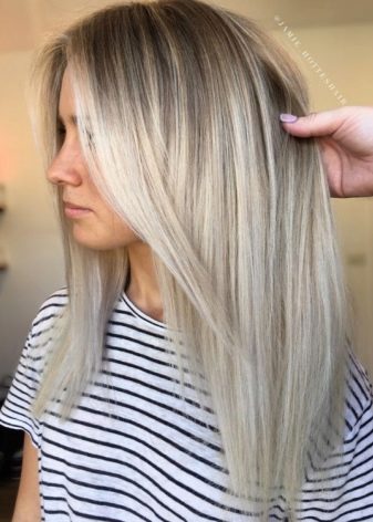 When choosing a tone for highlighting locks or hair ends, you should focus on your color type. It is better for women with a warm color type to opt for golden or wheat tones, ladies with a cold color type should choose platinum, as well as ash or pearl tones.