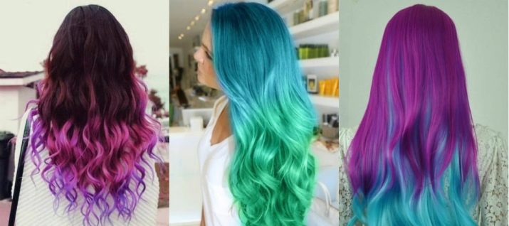 - Bright ombre. Any original colors are chosen: blue and green, lilac and pomegranate, as well as orange.