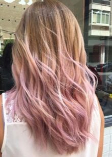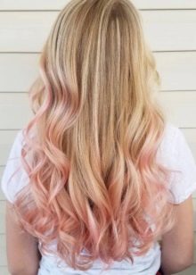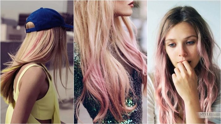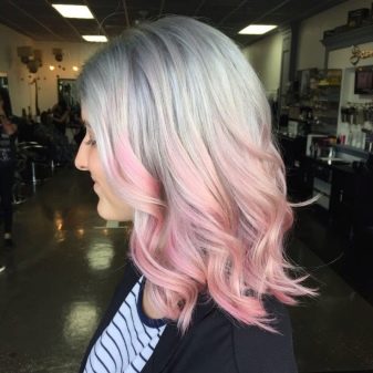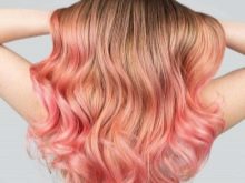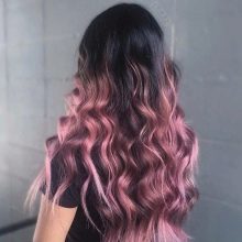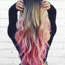 For owners of blond hair with lighter roots, a milky pink color is perfect. It will stand out against the background of fair skin and blue or pale gray eyes. In addition, this color will suit women at any age. Also for blond hair, you can use all the warm shades of pink. It can be gold or, for example, ashen.