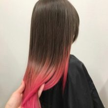 The pink shade looks great on girls with brown hair. Moreover, it can be both light shades of light brown and dark. The only thing you need is to find your tone. Brown hair looks great with rich, light and pink-salmon varieties.