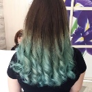 Dip dye staining is similar.but girls who want to flaunt only a few days with bright tips can use a less traumatic way. For example, it will be enough to color the locks with special crayons or colored powder.