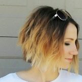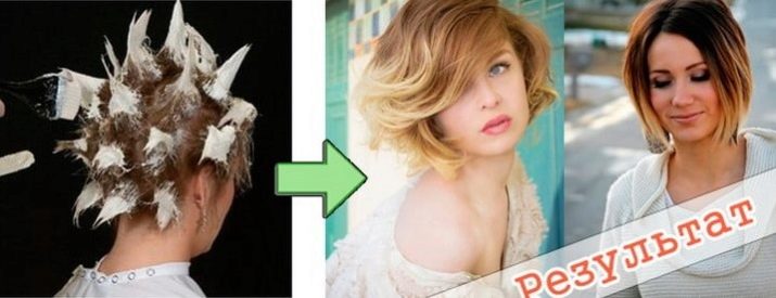 Short strands should be combed first so that the tips look up, and it’s better to even fix them with varnish. Part of the paint used is applied to the foil, which is then processed hair. Instead of foil, you can use your fingers, and directly paint them in the right places. After sustaining the required time, the head must be washed with shampoo and conditioner.