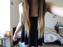 Making ombre at home begins with the fact that all hair is divided into three equal sections, which are fixed with elastic bands. First, the tips of the side parts are coated with paint, and then the middle part. Treated hairs are wrapped in foil and left for 30 minutes.Half an hour later, the hair is washed with a warm shower using shampoo. After drying the hairs a little, it is necessary to apply a small amount of dye in the transition zone to make the borders less clear. This time, the paint lasts about 10 minutes, and then washed off in the same way.