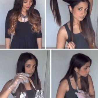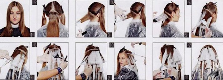In the second case, the treatment procedure begins with the fact that the hair at the roots is covered with a dark shade. Ten minutes later, the same composition is distributed to the middle of the hair. Finally, the ends of the hair are covered with a light shade and wrapped in foil. After sustaining the time specified in the instructions, the head should be washed, using shampoo and balm.
