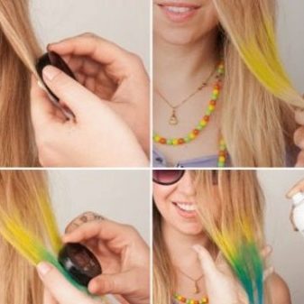 Although the color will last until the first shampoo, the use of such methods is simple, which means that you can change the shades at least every week.