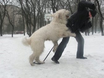 The South Russian Shepherd Dog is suitable for training on guard duty, but is prone to self-applying the acquired skills. Instead of one tight grip and fixation of the victim, the dog makes several attacks that do not give the criminal the opportunity to escape. It is quite difficult to resist such an onslaught, since the behavior of the animal does not fit into the framework of standard schemes.