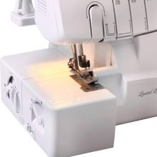 This sewing machine can easily handle the cutting and processing of materials. It is equipped with an upper looper converter, which allows you to work with any thin threads. Overlock has an automatic needle threader that allows you to thread the thread into both needles. Special accessories are supplied with the device to prevent stretching of the fabric.