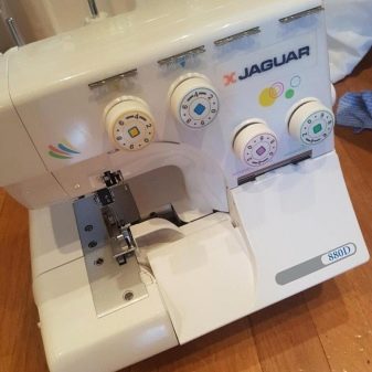 More expensive with advanced features Jaguar 880d differs in power and speed of work. There is an automatic needle refill. It works with two threads, allows you to adjust the stitch length to 4 mm, width - within 4-7 mm. A review of reviews on this model shows that users like performance, reliability and low noise. Of the minuses - sometimes there are breakages of the thread of the lower looper.