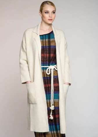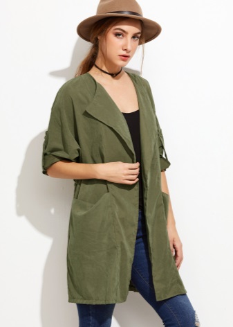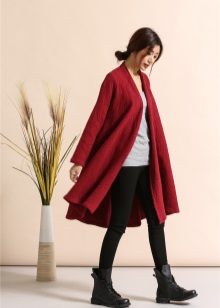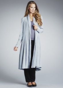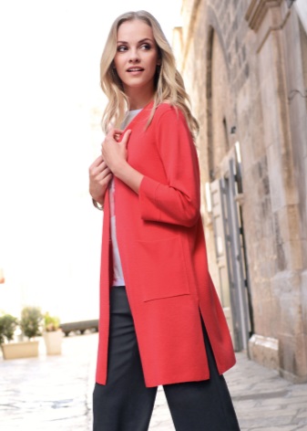 Outwardly, the summer coat resembles a cardigan, but differs from it in a more pronounced and clear design and the material from which it is sewn. Most often, thin drape, jersey, cashmere and other dense materials are used for sewing a coat.
