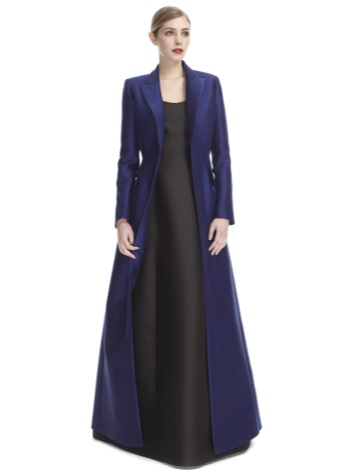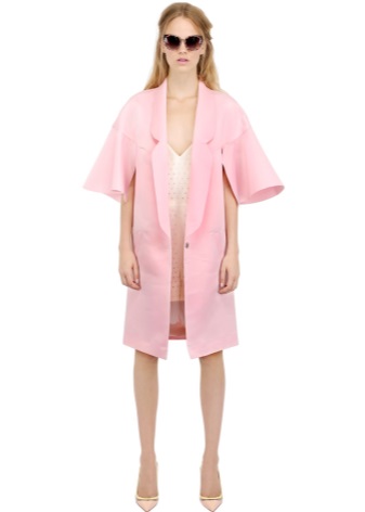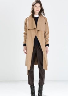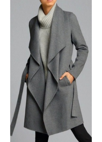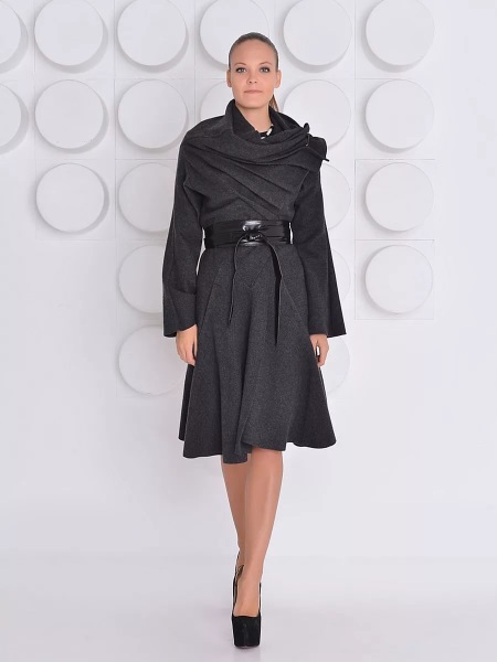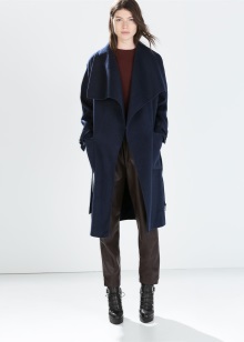 Until recently, one of the most popular material for sewing such coats was drapes. This dense and heavy fabric retains its shape perfectly and is suitable for creating models with an interesting, complex cut.