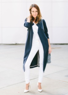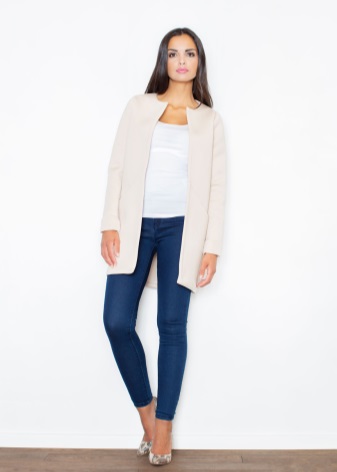 A coat made of a slightly denser fabric looks great with jeans, pants and a top, shirt or blouse. As shoes for this set, you can pick up moccasins, flat shoes or even sneakers. As an accessory, you can use a light, bright scarf, a bag over your shoulder, etc.
