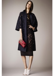To decorate the evening toilet, it is best to choose a coat made of lace or shiny, transparent fabrics of a classic color, for example, black. Such a coat is universally suitable for a dress of any style.