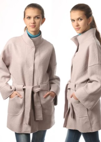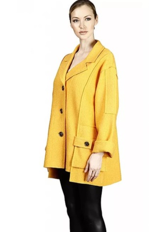 The jersey coat has a fairly high degree of elasticity, lightness and a very small crease. The material is great for creating complex, beautiful draperies, so a complex, asymmetric cut coat with an interesting cut, etc. is often sewn from it.