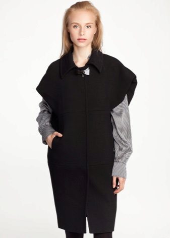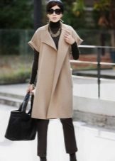 Sometimes they try to call him a cape, but this is not entirely correct. Cape is almost a poncho, but tailored to the shoulder line, loose or in shape, usually without sleeves, but with slots for the hands. A coat without sleeves is a coat, elegant or piquant, strict or perky, athletic or military.