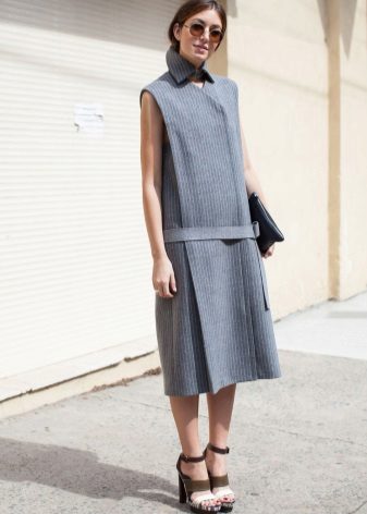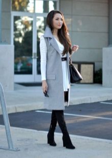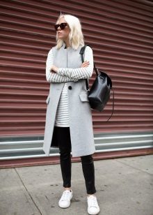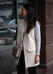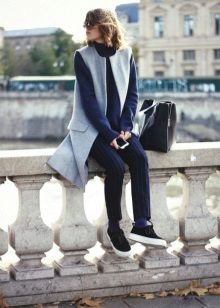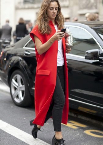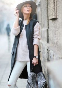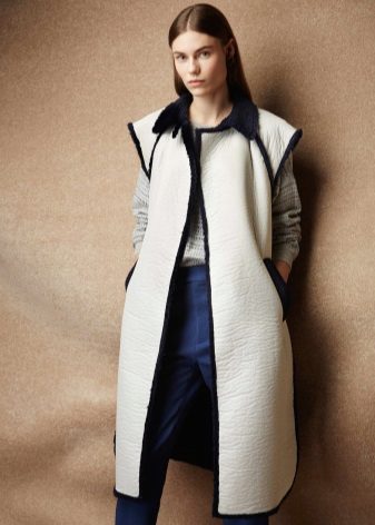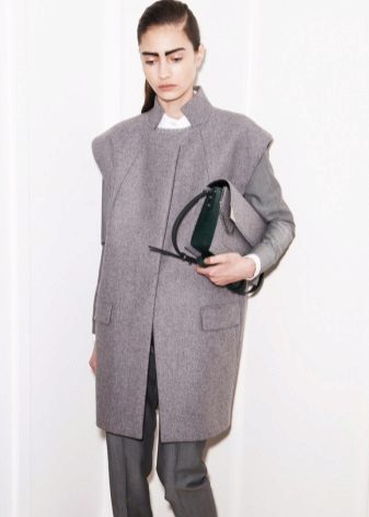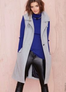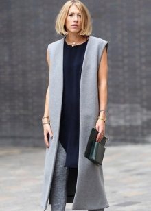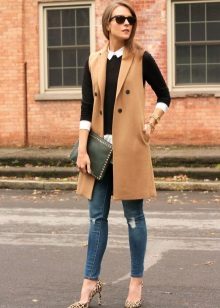The main thing is to remember that a coat is outerwear, and this model, due to the lack of sleeves, obliges you to combine it with the rest of the clothes in both color and stylistic terms.