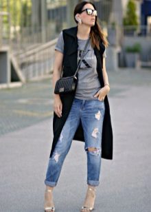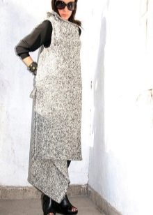- Coat without sleeves with a hood. As a variation of casual style or, when adding sneakers, a sporty look, but also a sporty accent, this one is also quite elegant.
