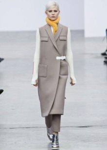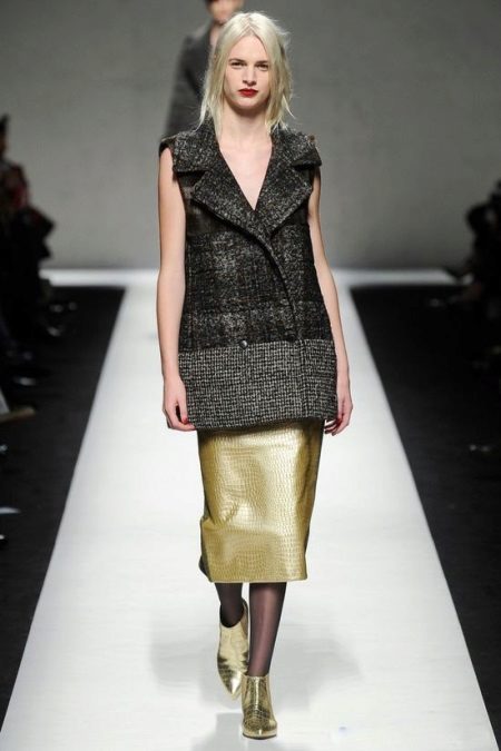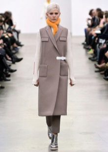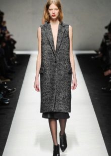 - Coat vest. The English style, strict silhouette, to which the fact that this is still a coat, gives a special piquancy.