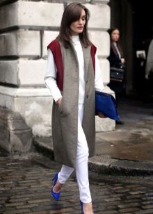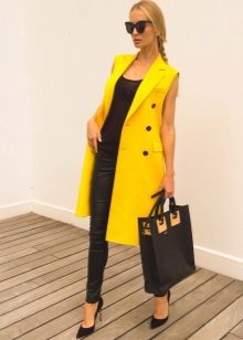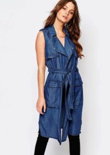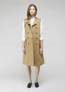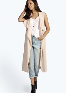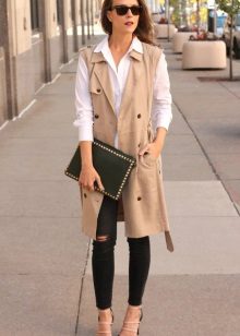 - Lightweight sleeveless coat.One of the favorite details of the wardrobe of the unsmiling wife of the famous football player, Victoria Beckham. In the summer it looks especially unbanal, but always very stylish.