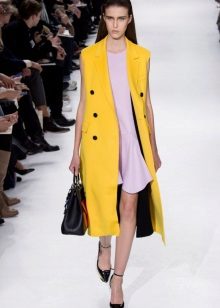 - Christian Dior offers a combination of sleeveless coats of pure and rich colors with a-line dresses or slim elongated sweaters.