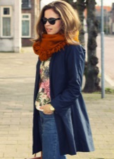 When choosing a bright, large scarf that should dilute a plain coat, you can leave it as a free cloak. Simple, but bright and expressive.