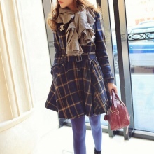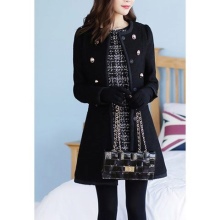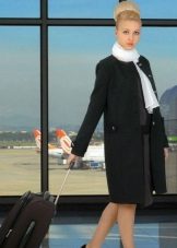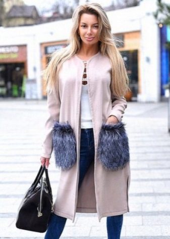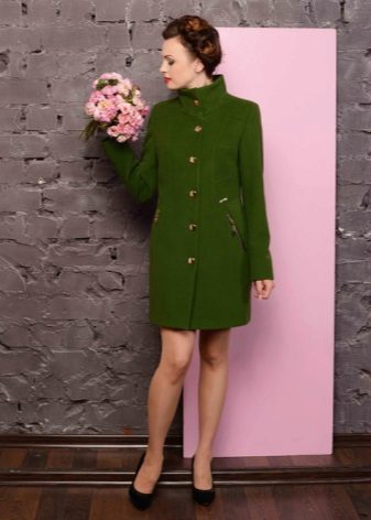 The most common collarless coat model has straight fitin which the waist stands out with a belt.
