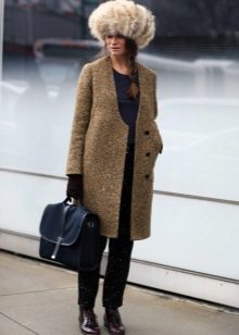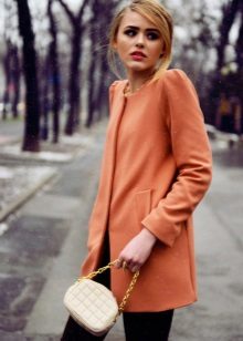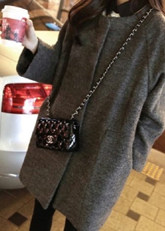 Well, what female image can do without a bag? Any bag is suitable for a coat without a collar: a business briefcase, an elegant clutch bag, baguette and other options. The color of the bag does not depend on shoes or coats; in modern fashion it is permissible to choose a bag at your discretion.
