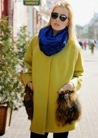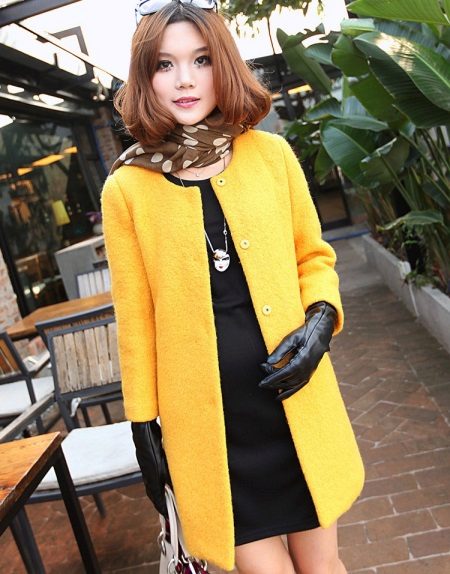 Do not be afraid of bright colors when choosing an autumn coat. Against the backdrop of a gloomy city, dull weather and passers-by, dressed in dim colors, you are wearing a coat without a collar, but with bright colors, will be like the sun, a fresh wind or a clear sky. So you should definitely choose a coat with bright colors, for example, yellow, which again becomes more and more relevant, and all its shades.