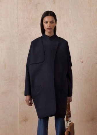 Designers decided to return this thing to the catwalks, only slightly modifying it and presenting it in a slightly different light. A modern coat without a collar is recognized by three signs that are taken as the basis for the creation of the next model: