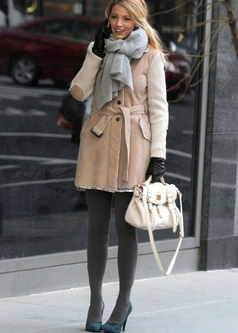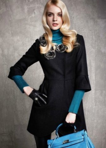 Since the coat does not cover the neck, this function is transferred to other elements of clothing. For example, a turtleneck or golf. Such clothes will warm, provide a comfortable stay on the street and allow you to set the necessary accents.