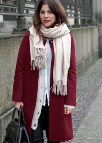 There are many ways to wear a scarf, shawl, scarf or stole with a coat. Unlike other models of outerwear, a coat without a collar obliges you to include similar elements in your images.
